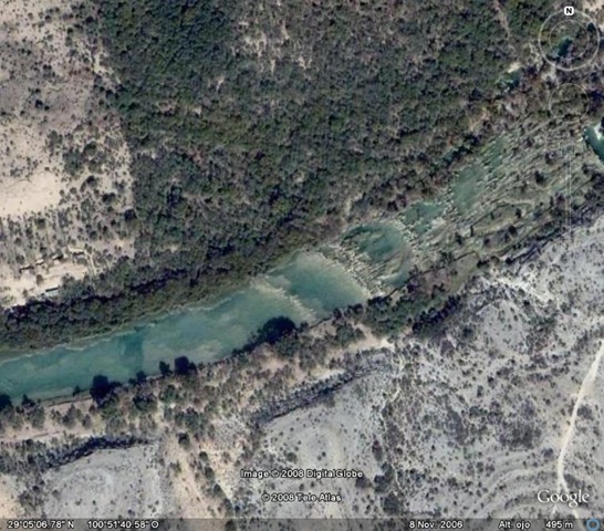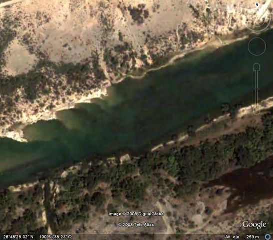 Río San Diego, en el norte de Coahuila. De los pocos en México cuyo fondo se puede ver desde muy alto.